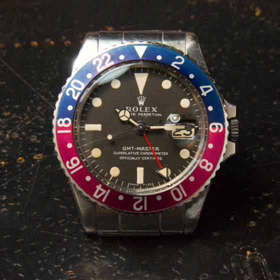 Notes: The original Fuchsia insert is incredibly vibrant. This is one the best examples of a tropical mk1 fuchsia GMT that we have ever seen.